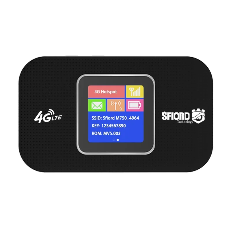 مودم M750 اسفیورد با رنگ مشکی و طراحی ویژه و دارای یک نمایشگر رنگی زیبا که نمایش دهنده میزان آنتن دهی، تعداد وای فای متصل، میزان شارژ باتری، اعلان پیامک دریافتی و ... می باشد با گارانتی معتبر شرکت کیانام ارتباط به خریداران محترم تقدیم می گردد.