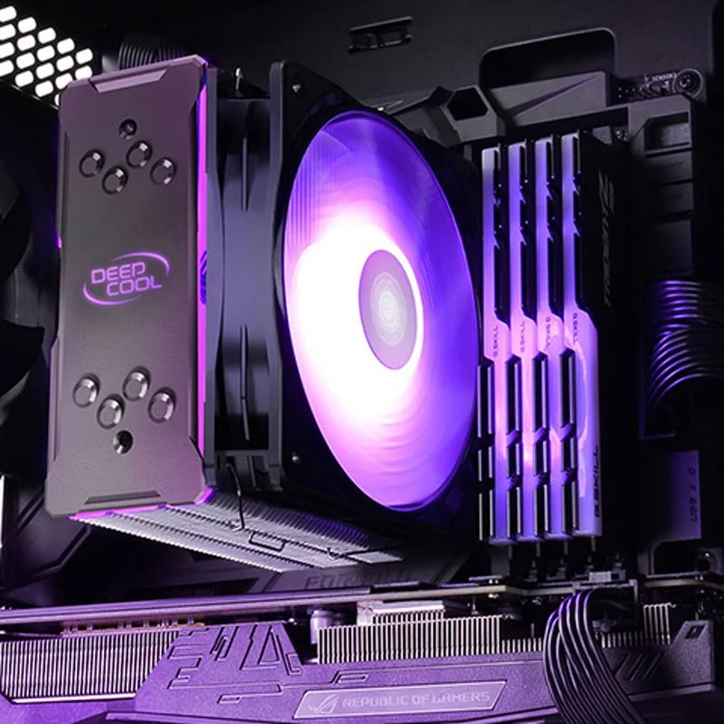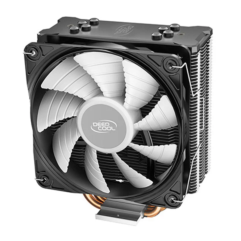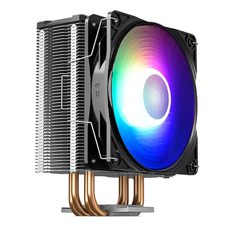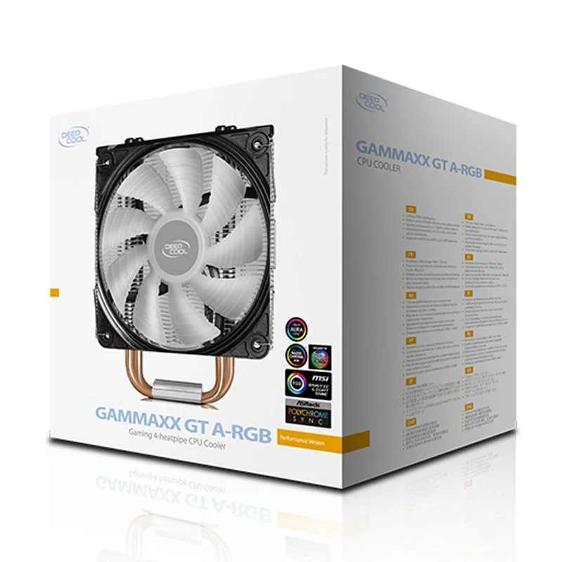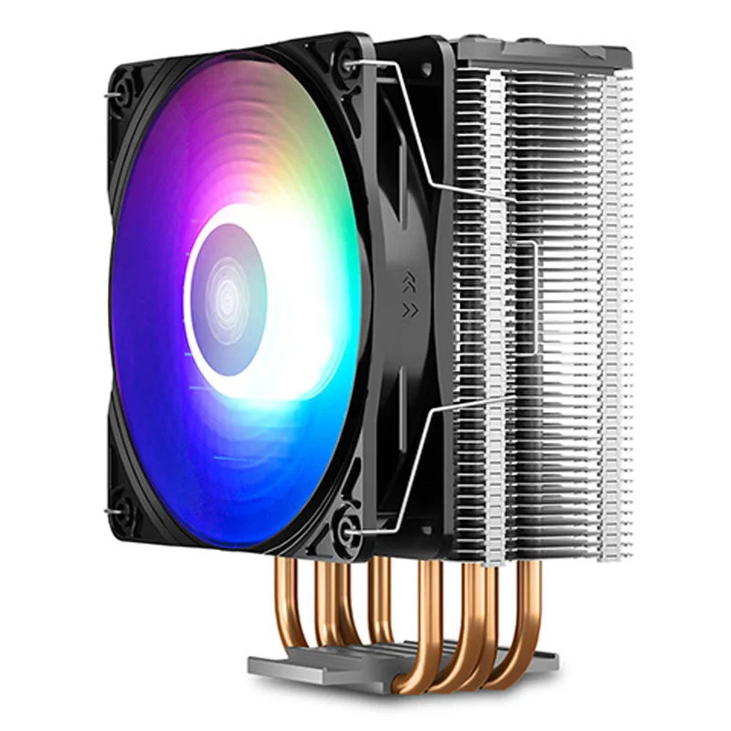 فن خنک کننده CPU دیپ کول DeepCool GAMMAXX GT ARGB/سیستم خنک کننده بادی پردازنده دیپ کول مدل GAMMAXX GT ARGB/سازگار با طیف وسیعی از سوکت پردازنده های کمپانی اینتل و AMD با قابلیت نصب و راه اندازی سریع و آسان/دارای چهار لوله ناقل حرارت مسی، رادیاتوری آلومینیومی و بلوک تماس مسی جهت پخش یکنواخت حرارت تولیدی/مجهز به یک فن ۱۲۰ میلی متری از نوع Hydro Bearing با توانایی تولید جریان هوایی معادل ۶۴٫۵ فوت مکعب بر دقیقه/سرعت چرخش پره ها متغیر در بازه عددی ۵۰۰ الی ۱۶۵۰ دور در دقیقه، فشار هوای تولیدی توسط فن برابر با ۲٫۱mmAq