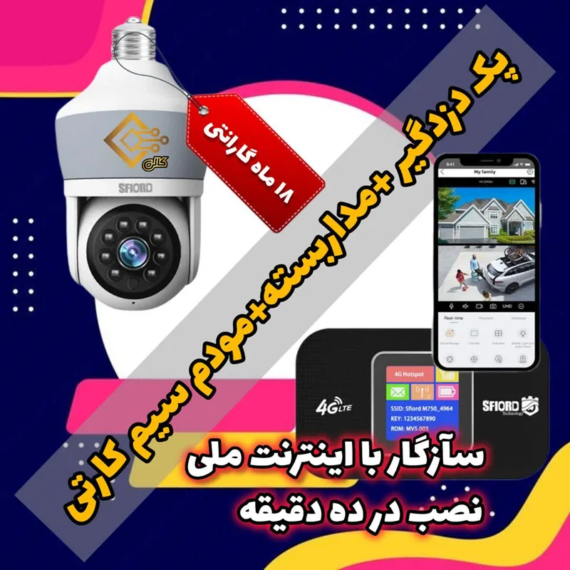 پک دوربین مداربسته +دزدگیر+مودم سیم کارتی (تنها برند سازگار با اینترنت ملی)انتقال تصویر با ضعیف ترین اینترنت موجود.این پک برای امنیت محل مورد نظر شما کافی است چون هم شامل مداربسته,دزدگیر و مودم سیم کارتی است و به هیچ چیز دیگر و هزینه مازاد نیازی نمی باشد.از همه مهم تر در صورت ملی شدن اینترنت تصویر قابل دسترسی و پایدار است.