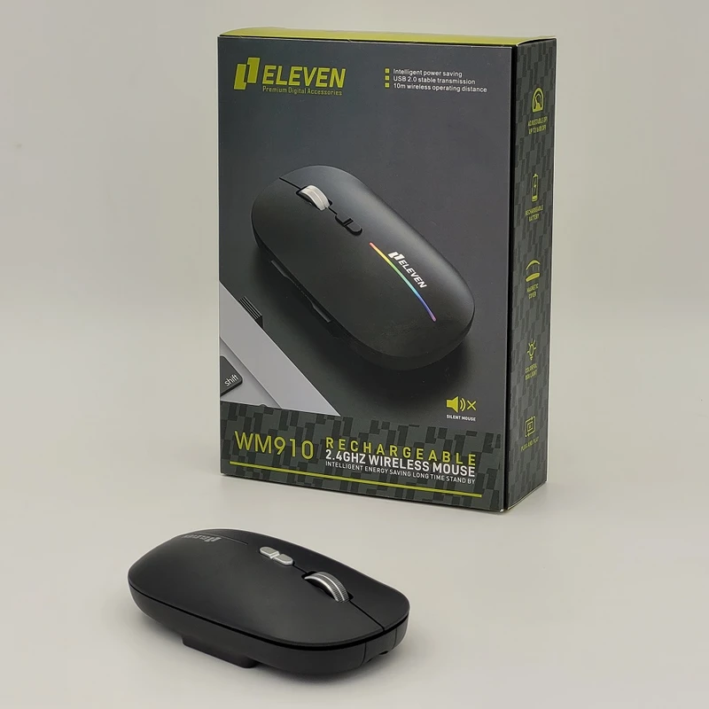 ماوس بیسیم ELEVEN مدل WM910 موس بیسیم، به عنوان یک دستگاه ورودی بیسیم که برای کنترل نشانگر روی صفحه کامپیوتر یا لپتاپ به کار میرود، اولین بار در دهه 1980 میلادی وارد زندگی افراد شد. ایدهی استفاده از موس بیسیم از طریق اتصالات رادیویی به جای کابلهای سیمی، امکان فعالیت بیشتر و انعطاف پذیری بیشتر در استفاده از کامپیوترها را فراهم کرد. این ماوس با فرکانس 2.4GHz کار میکند که باعث میشه بردی تا 10 متر داشته باشد.ماوس WM910 ELEVEN هفت کلید دارد، اسکرولش فلزی هستش که باعث زیبایی آن میشود، دکمه بک و فوروارد ، تنظیم DPI و دکمه تمیز کردن صفحه های باز روی دستکتاب دارد.WM910 ماوسی شارژی هستش که با کابل TYPE-C شارژ میشود. قابلیت جالب این ماوس راحت عوض کردن باتری شارژی آن است. البته باید توجه داشته باشید که باتری شارژی این ماوس یک باتری 3.6 ولتی هستش و با باتری قلمی معمولی کار نمیکند